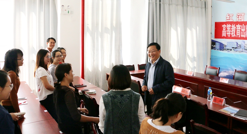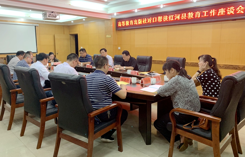 調研組與紅河縣政府及相關部門負責同志召開了座談會。座談會上,紅河縣縣長和濤介紹了紅河縣脫貧攻堅工作進展情況,以及高教社援助紅河縣教育事業發展情況及部分學校辦學情況。高教社黨委書記宋永剛表示,歷史把高教社和紅河縣緊緊地連在了一起,高教社將按照教育部黨組關于教育脫貧攻堅工作的總體部署,繼續真心真情真幫,與紅河縣并肩打好脫貧攻堅這場硬仗;要更精準、再發力,緊緊圍繞“紅河所需、高教所能”的幫扶原則,在總結5年工作經驗基礎上,研究制定近三年扶貧工作規劃,做到目標明確、措施到位、監督有效。在雙方共同落實好、實施好現行幫扶計劃,推動紅河教育均衡化發展的基礎上,以更高的政治站位研究提出教育脫貧攻堅的長效機制。要著眼于教師隊伍整體素質提升,幫助紅河縣建立教師發展中心,以點帶面,發揮引領和示范作用,為紅河縣教育質量提升,為教育脫貧創建源頭活水。座談會由高教社掛職干部紅河縣副縣長毛紅斌主持。
