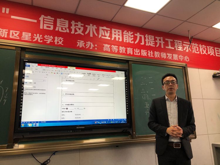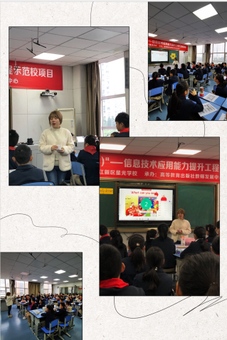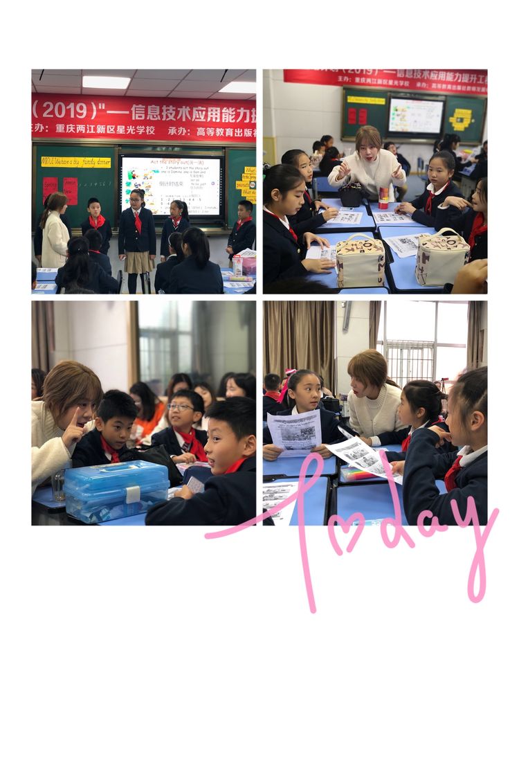 秋光散盡寒意濃,恰逢今日已立冬。由重慶兩江新區(qū)星光學(xué)校主辦,高等教育出版社教師發(fā)展中心承辦的“國(guó)培計(jì)劃(2019) ——信息技術(shù)應(yīng)用能力提升工程示范校項(xiàng)目”繼續(xù)在我校展開,今天的培訓(xùn)在來(lái)自成都市雙流九江小學(xué)江姝潔老師的一堂英語(yǔ)課中拉開了帷幕。