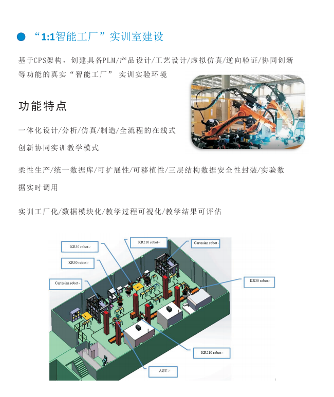 針對智能制造教育,為高等院校/中職院校全力打造智能制造創新教學體系建設(專業建設/師資培養/教學管理服務/資格證書認定/協同創新教學環境搭建);提供“1:1智能工廠”實驗室/“虛實結合”仿真實驗平臺/數字資源及現代應用技術實驗室建設,實現從虛擬到現實的智能制造實訓教學平臺。
